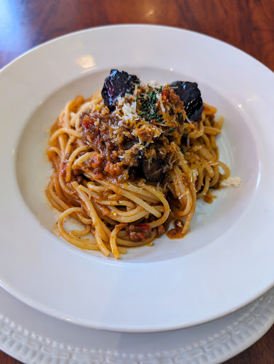 Read more2024/04 ちょっとハマってしまった淡路麺業の生パスタをロイヤルホストが使っていると知り、居ても立っても居られなくなりお邪魔しました。 平日の昼過ぎふらりと立ち寄ってみたのですが、8割方席が埋まっていておもいのほか優雅に過ごされてるお客様って多いのですね。 早速着席してメニューを見ると、美味そうなものがズラリと並んでます。 やっぱりロイヤルホスト来たら肉食べたくなっちゃいますが、ここは心を鬼にしてパスタ一択。 パスタメニューは三種類あり、そのなかでも茄子と挽肉のボロネーゼを注文しました。 肉々しくて野菜もたっぷりな旨味満点のソースが油を纏った茄子と共にモッチリブリンな太麺と絡み合って実に美味い! これは灯台もと暗しとはよく言ったもので、なかなかロイヤルホストに来てパスタ食うって選択肢がなかったので、嬉しい発見ですね。 スタッフの方々の接客もとても上品で素晴らしいし、次回はパスタのスペシャルランチをいただいてゆっくり出来ればと思い...