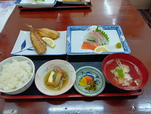 Read more海鮮巡りで来訪! 日曜の開店10分前に到着で先客は一組だけど、本日は予約客以外の来客は日替り定食のみの提供と言うホワイトボード有り。 入店の際にも口頭で説明がしっかり有りました。 テーブルに着くと温かいお茶か冷たいお茶を聞かれたので冷たいお茶を頂きました。 日替り定食はメインのおかずをアジの干物、ホッケ、タラから選択出来たのでアジを選択! ご飯はおかわり出来るとの事。 刺身はタイ、サーモン、イカで煮物の小鉢とお新香、お吸い物が付いて990円は安い。 アジの干物は美味しいけど冷めていたので身が硬くてやや食べにくさを感じた。 刺身の鮮度は良好。 煮物はやや薄めの味付けだけど気になる程ではなく、美味しい。 お新香は干からびてる。 お吸い物は味が薄く、不味くは無いが美味くもない。 値段が安いので内容的には十分ではないだろうか。 機会があれば別の料理も頂いてみたいと思うお店。 今回は予約客の料理を用意するので忙しい様だったが店...