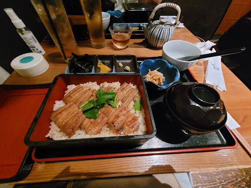 Broiled conger eel over rice is the specialty at this Zen-like fixture offering local sake.