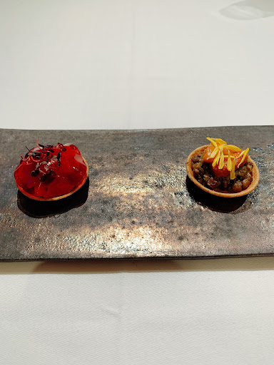 ・ビーツのジュレとウニとレンズ豆のアミューズは 見た目がとてもかわいく個性ある味わいで スタートがこれなので期待しかない!