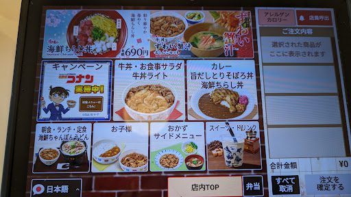 ランチでお邪魔しました。店内は結構広く、テーブル席も充実しています。少し時間がずれていたので空いていてゆっくり食べられました。 相変わらず、メニューがいっぱいありすぎて決めるのが大変。特にタブレットになってからは全体像がわからなくてひと通り目を通すのに随分時間がかかりました。その割に、目当てのメニューを選んでも写真が大きくなるわけでもなく、非常にわかりにくい。大手チェーンとしてはタブレットのメニューの作りがあまりよろしくない気がします。困っているのは自分たちだけかと思って観察してみましたが、最初から頼むものが決まっている人は別として、後から来たお客さんの中には注文までに数分かかっている方が結構見られました。 ねぎ玉牛丼豚汁おしんこセットと海鮮ちゃんぽんうどんを頼みました。丁度アニメとコラボしたキャンペーンをしていたので関連メニューを注文しました。が、届いてみたらコラボのおまけの付け忘れ…。付いてきた伝票にもしっかり印字されてるし、提供せずにお金を取るところでしたよ? 伝票とトレイ上の商品の確認って、しなくなったのでしょうか。 人手不足で色々なサービスが省かれていく昨今、変えざるをえないものの中で何を変えずに死守しようとしているかはとても気になります。 長年愛用してきたチェーンですが、この店舗だけでなく立て続けに色々なシーンを見せら...