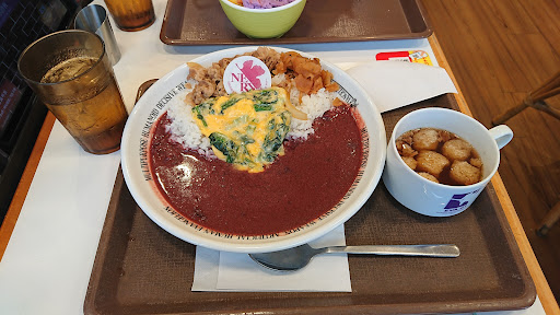 広島市でも西区方面で買い物や映画鑑賞後とかに、時々立ち寄ります。片側3車線の大きな道路(霞庚午線)に面していて、旧広島飛行場跡地・現マリーナホップへ南下する交差点の手前にあるので、西区方面から来る方は、早めに左側車線に移動しておいた方が良いですね。駐車場は広めで車が停めやすいし、台数もソコソコあるので車が便利です。ただし、帰り道は北側への一方通行路なので、どこかで北側か西側に進路を変えないと交差点に出られません。最初の交差点を右に曲がれば、旧広島飛行場路線の北側に出られます。そこだけ気を付けましょう。私が利用したのは2021年3月28日、映画シン・エヴァンゲリオン劇場版の帰り道で14時過ぎていたので、店内はすいていました。割と回転の早い店なので、お昼でもカウンターなら座れるでしょう。エヴァ・コラボの三食補完計画のハヤシカレー(890円)を食べましたけど、美味しかったです‼️特典のクリアファイルも、綾波レイと渚カオルをゲットして大満足です❗丼もの+コラボのポテトサラダも美味しいですよ❗映画の帰りに...