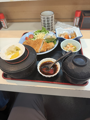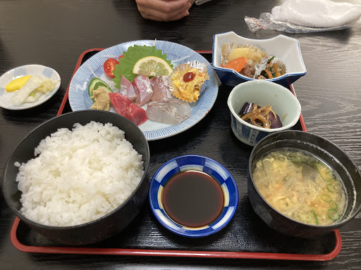 本来ならボリューム重視なところを妻の胃袋に合わせたランチをしようと思い、店を検索したところ昔からあるお店でなんとなく気になったので、行ってみました。 駐車場はお店の隣に3台くらい止めれそうな感じです。 私はサービスランチを妻はお寿司ランチをお願いしました。 小鉢は、肉じゃがと野菜炒めとナスの煮浸し。 刺身は内容を聞くの忘れてしまったので、よくわからないけど、マグロ、白身(ヒラメ?)、ハマチ。 ご飯と味噌汁と漬物。 小鉢はナスが美味しかった。南蛮漬けのような味付けで好み。 刺身は赤身がもちっとしていて、舌触りも良く美味しい。 大変満足なランチとなりました。 満腹より満足で店を選べる人になろうと思いながらお店を後にしました。 あとは好みの問題だけど味噌汁は溶き卵とか入ってたけど、もっとシンプルな方が料理に合う気がしたのと、刺身の皿にはあしらいだけの方が良いと感じました。 妻のお寿司ランチの貝汁が美味しそ...