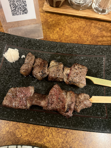 Read moreTenen tot tipus de carn de vedella, pollastre i porc, recomanable demanar-ne diverses perquè són petites. De preu estan molt bé pel tamany que tenen i estan súuuper bones: vaig provar les de pollastre normals i les de bistec i em van encantar, sabor molt natural i es nota que estan fetes a la brasa. A més, també tenen brochetes de coses com shiitake, pebrots verds i albergínia, i una opció de 7 broquetes variades. El personal súper amable i atent, els encantarà si els parles una mica de japonès 😉 També és destacable dir que és obligatori demanar una beguda per cap, sense comptar l'aigua. La comanda es fa a través de la web via codi QR, molt fàcil d'utilitzar. En resum, experiència excel·lent amb un menjar especialitzat en carn (yakitori, que són les broquetes) de molt bona qualitat en un ambient de barra acollidor, sobretot hi van locals però els estrangers com nosaltres hi són totalment benvinguts; de fet, tenen el menú en anglès. Gràcies per tot, ho feu molt bé! Un plaer haver sopat amb...