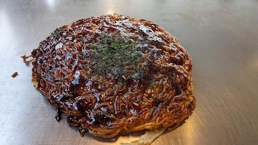 Read more何だか文化祭のノリの延長のような店内の雰囲気でした。 それは良いとして、驚くべきはカキの鉄板焼!アルミホイルを入れ物のようにして そこに炒めたカキを入れ、その上からポン酢をドバドバと約100ml程度入れたものを出されました。ポン酢の海で溺れるカキを取り出して食べるとポン酢だけの味わい。高血圧、腎臓病の方には危険です。 さらに黒焼きを頼んだ友人のお好み焼きの出来が酷く、 麺は焼きすぎでまるでベビースターラーメンの様にカチコチになっており、キャベツや生地と完全に分離してました。 焼き手や作り手によってかなり味の差が出るお店なのでロシアンルーレット感覚でお金を使い...