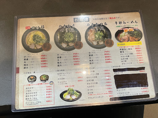 Read moreどこの系列店行っても、いつもと変わらずののりかつおつけ麺の大。 こちらの店舗はお初ですが、たまたまかわざとかわかりませんがかなり水切りが甘めで、食べ終えた器には水溜りが。 食べてるとつけダレがかなり薄くなるので残念な感じです。 それにしても大は1130円とのことで、いつの間にかこんなに高くなりましたねぇ…。 辛部は他所のつけ麺屋さんよりお手頃価格でしかも美味い!と気軽に寄れてたのですが、気が付けばどんどん他所のつけ麺と同じようなお値段に。 せめて他所より美味い!をしっかり守り続けて...