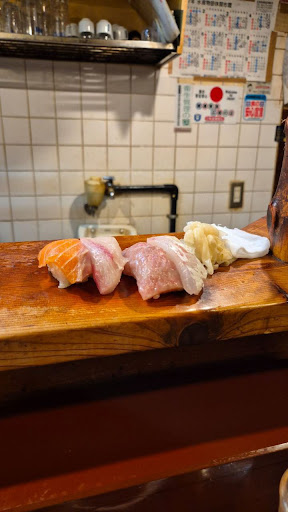 Read moreOne of the best sushi joints that we’ve been to so far on the trip! We actually just randomly walked past this place and decided to chance on it due to all the great reviews. Run by a very friendly elderly couple who have been doing it for at least 50 years. There’s not many options to pick from - several levels of omakase consisting of about 10 pieces of nigiri. She was encouraging us to eat with our hands for the best experience so we did! We picked the premium option which was ¥4000 per person. They’re very welcoming to tourists and they genuinely do try their best with English. We turned up at 6:30pm on a Friday night and nobody was there to begin with. Whilst we were dining there, all of the other patrons were Japanese speaking locals. All the food was so fresh and so delicious! They do put the food directly on the wooden countertop so either ignore the slight hygiene concern or just wipe over it quickly before the meal starts. Several were smoking indoors with limited ventilation so if you’re sensitive you may...