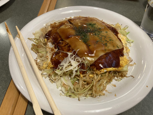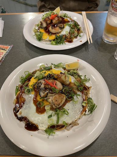 Read moreCASH only! But there's no sign!!! We came here bc the place we wanted to eat at had a super long line. They don't speak English here but have a limited English menu, so it involved a lot of pointing and Google translate. The food came out extremely quick and was tasty. They don't cook it in front of you but is brought out already made. They wouldn't let us order more food which was dumb. They were still open at 1pm. I didn't understand why we couldn't order more okonomiyaki or oysters. They kept saying no. No. No. And doing the X symbol with their hands. So we paid and left. Cash only! Which we didn't know until the end. Wish they'd put up an English sign saying this. If we had known, maybe we would have gone somewhere else. Thankfully we had cash. Also, my mom had view of the grill and saw the cook blow his nose and continue...