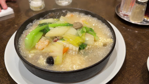 We had the mapu tofu, which I actually make at home (I make the Japanese version) and it’s a family comfort food tradition. Unfortunately, although very tasty, it was way too hot for us and we like spice! We only ate a quarter of it, as it required a lot of rice to be able to eat it. A bowl of noodles probably would have been a better choice to eat it with, but the Chinese version is supposed to be very spicy.
