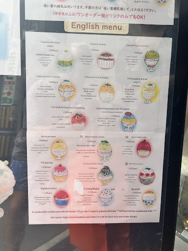 Read moreThe kakigori here were really disappointing compared to those we've had in other major cities. The flavours were either too bland or too strong (and sauces seemed to be made from jams etc rather than fresh fruit). Despite saying they have an English menu outside, we couldn't find one. With basic katakana knowledge, ordering via the vending machine is easy (and there are accurate drawings of each offering).