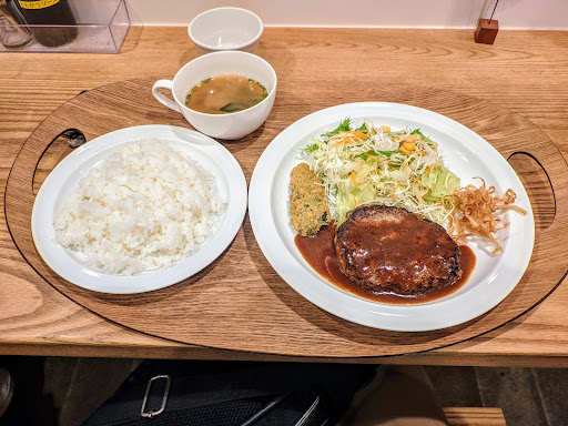 ハンバーグとチキン南蛮を頼みましたが、ハンバーグは肉肉しくて良いけど、硬めで皿の上で高速で冷めて行く。 チキン南蛮は、特筆する程の感じでは無くて、何処かの社食でも出る感じ。 卵をくぐらせ揚げ上がる衣の厚みが好みでは無い。