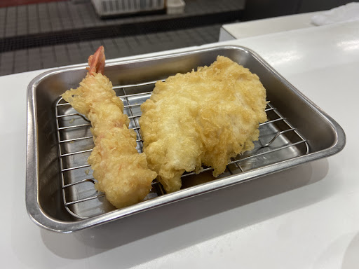 We had been herded like cattle, first at Kyushu U Hospital, then at Costco, so it was no surprise to be herded again here. You have to buy a meal ticket first. The seating was all bar stools, and we had to wait in a musical-chairs fashion. Typical noisy J-style tempura house. Ika was good; piman better; white fish the best. Fluffy white rice. I didn't like the fishy fish, though. Fishing poles (decorative) in a case...