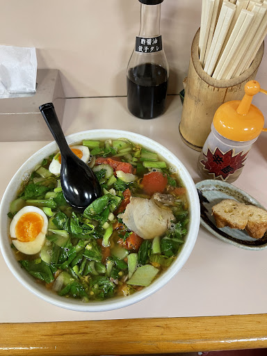 Read more唯一無二の味 日田には沢山美味しいものがありますが、こちらのお店はちょっと変わった中華店です。久しぶりの日田訪問だったので、これまた久しぶりにこちらのお店に訪れてみました。駐車場はありませんので、駅前にあるコインパーキングに車を停めて店内に入ります。 人気店らしく、満席でしたが、ちょうどテーブルの方が帰るところだったので、少々待ってからテーブル席に案内されました。お店の造りはL字カウンターにテーブル、小上がりがあり、小さなお子様連れも大丈夫です。 メニューを拝見し、この店人気のプノンペンラーメンとトマト丼を注文しました。まず最初に来たのがプノンペンラーメン。野菜たっぷりの醤油ラーメンで、セロリ、小松菜、トマトがたっぷりと入っています。シェアできるように器もひとついただきました。 まずはスープからいただきます。あっさり系の鶏ガラスープで、セロリの香りが移り少しエスニック風です。麺は中太縮れ麺で、このラーメンにとても合っています。一緒にいただいた辛味スパイス液と粉にんにくを加えると、一気にエスニックラーメンになります。辛味とにんにくのパンチが加わり、めちゃくちゃ美味しいラーメンに早変わり。辛くすることでセロリが良い仕事をしてきます。 次に出てきたのがトマト丼です。ざっくり言うとトマトたっぷりの中華丼といったところでしょうか。トロリとした餡がご飯にたっぷりかかっています。トマトの酸味がとても心地よく、これまた美味しいです。他の店ではお目にかかれない丼ですね。スープも付いてくるのでありがたいです。 そしてこちらのお店、デザートが無料で付いてきます。沖縄のサーターアンダギーです。食べきれない方はぜひお持ち帰りください。 すぐ近くにある寳屋も大人気で、駅前での食事には困らないでしょう。 プノンペンラーメン 900円、トマト丼...