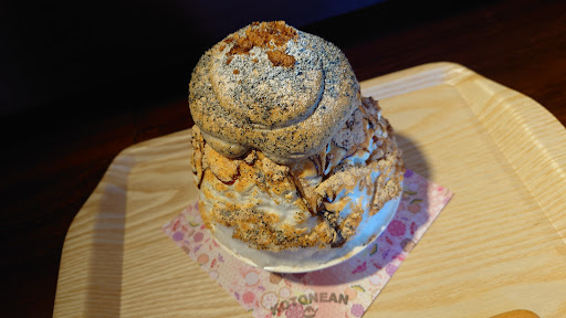 Read more日田を代表するカフェの一つです。人気メニューはかき氷です。日曜日の11時半頃に訪れて3組待ちでした。注文したのは黒ごまきな粉和三盆。連れはティラミスとレアチーズです。注文した順に一人一人運ばれてくるんですが、そこそこ待たされます。おそらく、そう広くない厨房で一人で作ってるんじゃないかと思われます。そんな感じですので注文後の待ち時間多めなんでしょうね。黒ごまきな粉和三盆は和風のほのかな甘さが感じられるふわふわのかき氷です。氷の中には餡が隠れてました。個人的にはもう少し甘さが(というか味が)欲しいです。口の中が冷えてくると味覚が落ちて後半は味があまりしなかった。もしかしたら他のかき氷はしっかり味があるのかもしれませんが。店内は狭くテーブル席が2つと3人がけのカウンターです。提供に時間がかかるので回転は悪いような気がします。駐車場は店舗前の道路を挟んだ反対側に車(3台分か...
