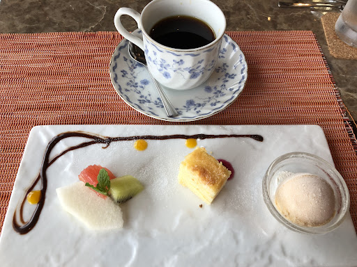カルパッチョは鯛と鰹で違う素材で提供。前菜は盛付けが凝ってあり「キャーっ💕」と乙女心を擽られた(笑) ふかひれパイ包みスープは + ¥ 200 でオーダー。熱々で美味しかったが、フカヒレはどこに隠れているのか探すほどだった(笑) スープから10分程経過後にパンが配膳。パンかライスか選択式。※パンはおかわり可 ハンバーグはパサパサしたらしいが、若鶏はプリプリで軟らかく美味しくいただけた。 食後にデザートとコーヒーor紅茶が提供。 コレもまた、見て楽しんで食べて尚楽しめる🎶\(^_^)/