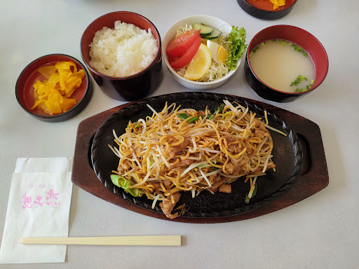Read more日田祇園祭りの見物の為に日田市を訪れ、ランチで日田焼きそばを食べようということになり入店しました。お店には12時くらいに到着しました。駐車場は20台分くらいでした。お店の入口に名前を書いて順番を待ちます。私達の前には一組並んでいて、私達が呼ばれたのは記入して5分も経っていませんでした。窓際の4人掛けくらいのテーブル席に案内してくれました。店内はテーブル席が7つくらい。カウンター席が5〜6つくらい。私達で丁度満席になりました。早速、焼きそばの定食セットを注文しました。5分くらいしてサラダが到着。さらに5分後にライスとスープ。さらに5分後に熱々鉄板の日田焼きそばが到着するという感じの時間差で品が出てくるので長く待ったという感じがしませんでした。焼きそばの提供は早かったと思います。麺以外の具材はもやしとネギと豚肉。麺は鉄板に乗せられているので上の方はもっちり、下の方はパリパリ食感で美味しかったです。ご飯は国産米を使用しているとのことでした。ご飯の器が小さく見えたけど食べ終わった時にはお腹一杯になり、とても満...
