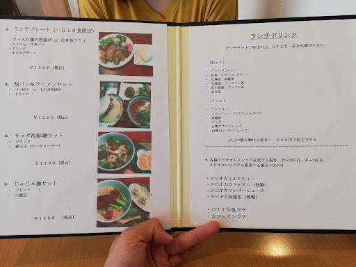 Read more地元でタピオカが飲めるお店を探したら見つけました。 平日13時頃に到着。細い路地の奥にあるので見つけづらいです。外から見るとカフェというより住宅でした。カフェは一階と二階があります。一階は台湾のカフェっぽくて良い雰囲気です。二階はやっぱり友達の家っぽさがあるといった感じでした。ランチメニューもありましたが、ティータイムメニューにしました。タピオカミルクティーと小籠包、ごま団子を注文しました。店員さんもおそらく台湾の方みたいです。 タピオカはほんのりと黒糖の味が付いていました。ひと昔前に食べた時はタピオカに美味しいという印象がなかったのですが、今回は美味いと思えました。ごま団子も熱々でもちもち生地にたっぷりのあんこが良かったです。一方、小籠包は肉汁がほとんど出てこなかったのが残念でした。 お値段はタピオカドリンクと食べ物のセットで600円くらいです。東京だとドリンクだけで500円くらいするので、コスパは良いと思います。次回は雰囲気の良い一階でゆっくりとしたいと思います。...