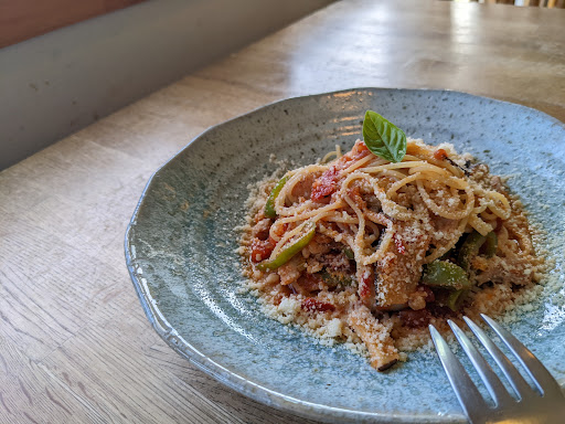 パスタと和風オムライスをオーダー パスタは優しい味付けで パスタの小麦や野菜の味が しっかりわかる程です