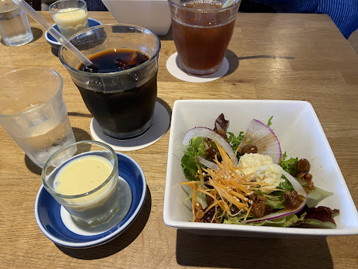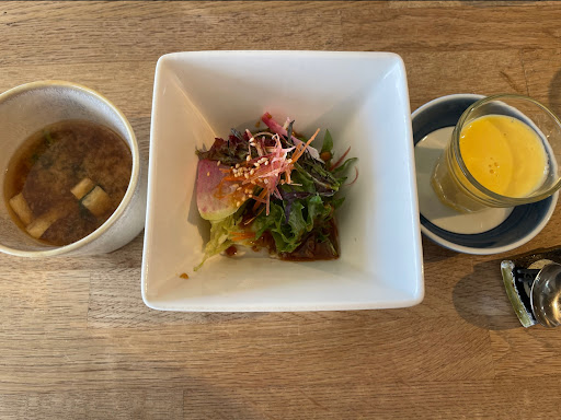 日替わりパスタを注文。サラダとお味噌汁とスムージーが前菜に出てきました。お料理の説明がしっかりされていて接客も丁寧でした。 サラダには麹味噌のドレッシングがかかっていてました…もっと食べたかったです。お味噌汁は油揚げと小ねぎのシンプルなお味噌汁でした。 スムージーはショットグラスのようなものにツーフィンガー分ぐらい出てきました。酸味が効いたマンゴー風味で美味しかったです。 メインのパスタは鶏肉とトマトソースでした。程よい塩加減、豊富な具材、彩りもよく美味しかったです。パスタの麺は細めでツルツルタイプ、ソースがサラサラだったのでソースとの相性はイマイチでした。 海の波の音を聞きながらゆったりと過ご...