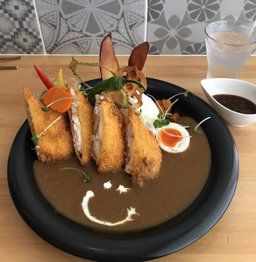 まず、カレーの盛り付けが可愛いらしい。 ライスに刺してある素揚げのさつまいもがウサギの耳みたいです🐰 ささみカツはカラッと揚げられていて、カレールゥと甘辛い味噌がとてもマッチして、美味しかったです。ささみカツがけっこう大きかったので、お腹いっぱいになりました。 辛さ控えめでしたが、辛さの調節もしてくれるようです。 別腹のプリンパフェも美味しくいただきました。