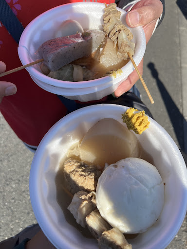 産業祭にて おでん半額➕おでん1品オマケ付きやってたので、 買うことに 2皿頼んだが、具の入れ間違いが...... なんやか不具合あって串1本サービスしますと入れてくれたのがあったが、普通に付いてくるであろうオマケが付いてないというね (そこは別に無問題) 後ろの列の並びの圧もあったので何も言わず、そのまま支払い 食べる前に総額に違和感、オマケを抜いて10品も買ってないのに総額1000円オーバー これ、半額になってなくないか? 面倒だったが、戻ることに