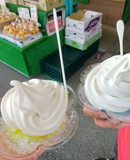 Read more隣にあるみなと亭でお腹苦しくなるまで食べてから、このお店のフラッペ(450円)をいただきました。店員の女性が、おそらく外国人で、素っ気ない感じでした。税率の関係で、店内飲食する場合は高くなると思います。持ち帰れるメニューなら持ち帰るのがいいと思います。 レモン味…ほとんど味がしません。ブルーハワイ味は懐かしのブルーハワイ味がしたけど、これも若干薄かったかも?シロップが薄すぎるのか? 上にのってるソフトクリームは割と濃厚でおいしかったです。 かき氷のクオリティには期待しない方がいいですね。昔ながらの屋台のかき氷みたいな感じかな。(大しておいしくないのにぼったくり価格の…) これならソフトクリーム単品でも良かったかも。クレープが確か450/480円だったので、フラッペを食べるならクレープの...