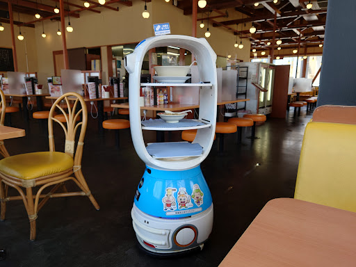 かなり久しぶりの来店 料理は普通に美味しく食べられます ただなんか昼時でも客はまばら、活気はいまいち こういう事も店員のモチベーションに影響するのかしないのか、、 ロボットがチープな機械音声とともに淡々と料理を運んでくる けっこう配膳店員おるけど迅速性関係なしののんびりゆったりロボット任せ(笑)