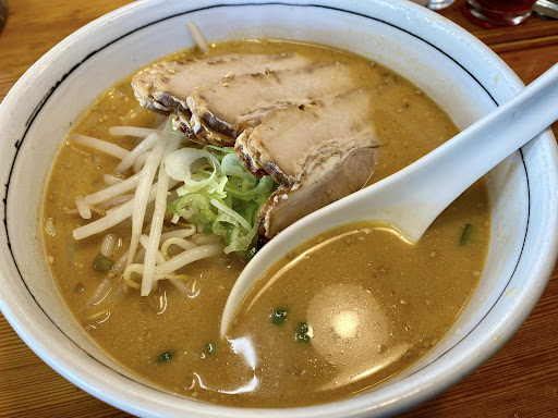 Read moreこの日は用事で日立市方面へ出掛けたのだが昼食をどうしようか悩んで決められなかった。道中、母との話しで「冷凍餃子が美味しかった」、それが日立多賀のラーメン屋さんだと言う。せっかくなら直接お店で食べてみようと思って急に思い立って行ってみた。駐車場はいっぱいでしたが、1台空きがあって店内も満席かなと思ったが広くて普通に座れた。厨房も広いし、テキパキやってて回転が早そうだ。 注文は初めてなので人気っぽいメニューを注文。 嫁は「ごまみそめん(ごまみそ味)」 俺は「とろチャーシューごまみそ(ごまみそ味)」 母は「からねぎあっさり(醤油味)」 シェアで「餃子(5ヶ)×2皿」 そして俺は「半チャーハン」 ちょっとテンション上がって頼み過ぎた感はあるが、ごまみそはスープも麺との相性抜群で美味しくて餃子やチャーハンも進んで、お腹いっぱいでした。餃子5個で320円で安い割にしっかり美味しいのでお土産に焼いてもら...