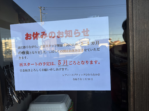 Read moreいつも美味しく頂いてました。最初は水戸の県庁に近くにあったのですが、残念なことに閉店になってしまい他を探してたら、ひたちなか市にあることが分かり通い始めました。最近また食べたくなって行ってみたら臨時休業になってて残念でした!まさかそのまま閉...