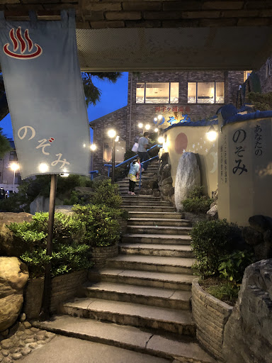 黄褐色?、透明、微塩味、無臭←源泉加温循環ろ過塩素(全て) 源泉名:阿字ヶ浦温泉 のぞみ 調査及び試験年月日:令和3年4月26日 源泉泉質:ナトリウム―塩化物強塩温泉(高張性・中性・低温泉) 泉温:30-6℃ 湧出量:130L/min 源泉pH値(酸性0-純水7-アルカリ性14):7.4 溶存物質(ガス性のものを除く):2392mg/kg 飲泉不可 無料駐車場:有り 日帰り温泉時間:木曜定休日、1000時〜2100時 入湯料:980円、休日1250円、特定日1350円、JAFはレンタルタオル 100円返却式ロッカー、シャワーカラン8つ、シャンプー類、ドライヤー 内湯一つ(井水水風呂含まず、源泉加温循環ろ過塩素41℃?(湧出口?℃)) 露天六種(井水水風呂含まず、源泉加温循環ろ過塩素露天風呂41℃?(湧出口43℃?)、源泉加温循環ろ過塩素展望露天風呂39℃?(湧出口45℃?)、源泉加温循環ろ過塩素ひのき風呂?43℃?(湧出口41℃?)、源泉加温循環ろ過塩素香り風呂41℃?、源泉加温循環ろ過塩素鞍馬天狗43℃?、源泉加温循環ろ過塩素五右衛門風呂2つ37℃?)
