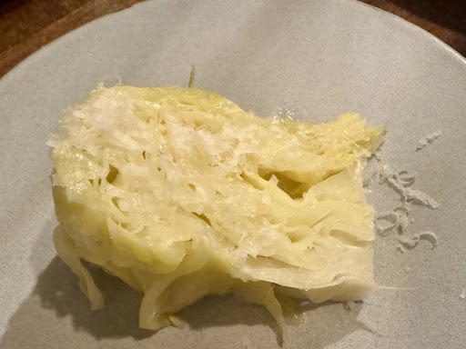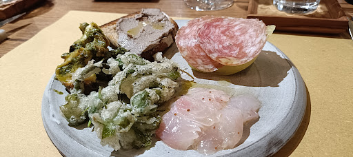 The amuse-bouche was Cabbage with Parmigiano, was super delicious and good. The home-made mozzarella, persimmon & Gunma ham. The mozzarella was very creamy & it was so delicious with the sliced persimmon and Gunma ham. The green salad was refreshing and the dressing was light. The veggies were hand plucked 3 hours before the restaurant was opened The Margherita pizza crust was flavorful and the sauce was so good with the mozzarella cheese and extra virgin olive oil. The Seafood Paccheri was very flavorful. The paccheri was cooked Al-dente. The sauce was full of umami and yummy. The squid, prawns and scallops was cooked just right. The chef was very friendly and went out, all the way to translate the menu and print it out for us. He also explained each dish when he served us. The restaurant is small and has 3 tables and 8 counter seats. It’s best to make...