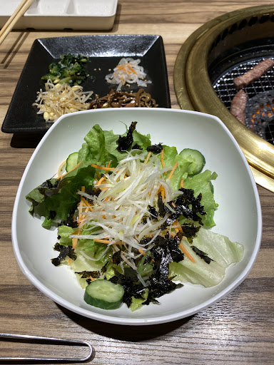 Read more食べ放題じゃなく単品でオーダーしました。 ナムル盛りは初めから写真に写ってる量でした。 ガッカリ度120%不安いっぱいで肉などもオーダー。 タンは豚のタン¥580をオーダー、臭くてびっくりしました。逆に580円は高い感じです。 肉質が解ってたら逆に食べ放題にしてました。 シーザーサラダが食べたかったが品切れ。チョレギサラダをオーダー。ハラミや内臓系もオーダー。出て来るのが早いのは良かった。 極め付けは、追加オーダーしたのどがしら。豚の毛がかなりの量ついていました。気になったので店員さんに伝えたところ、謝られましたが、毛がつくのは仕方ないと言われました。そんな話し聞いた事がありません。どうやったら「のどがしら」に毛がつくのか不思議でなりません。豚足でもないのに... 他の内臓もしっかり焼けば臭みなどはほぼ消えます。 正肉はほとんどオーダーしませんでした。 冷麺は盛岡でもなく韓国冷麺でもなく独特の麺でした。 スープは美味しかったです。冷奴も美味しかったです。 席は個室なのでゆったり座れていい感じでした。 2人で¥5300。ここで食べるなら食...