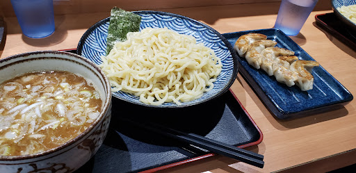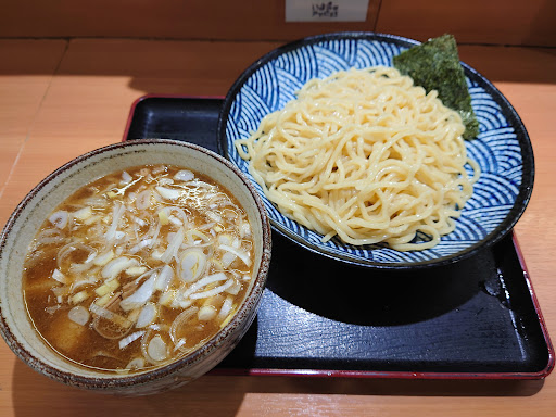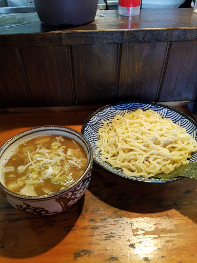 麺が乗ってるお皿には、中太麺がででんと乗ってて、海苔が1枚… シンプルだな…と思いきや、つけ汁の方にメンマ、ネギ、ゴロゴロしたチャーチューが沢山入ってて、魚介系のつけ汁はわりとあっさりしてて、少し固めの麺をつけてよく噛んで食べると、お腹いっぱいに…♪