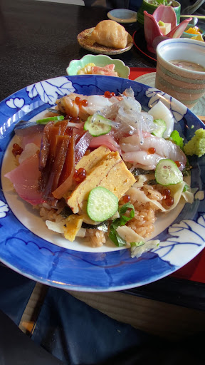 お昼のおまかせ海鮮丼1950円をいただきました。(海鮮丼:鯛、ブリ、シラス、エビ、トロ、イクラ、サバ、つぶ貝、イカ)あら汁、茶碗蒸し、サラダ、コーヒーの5点)お寿司の酢飯がひんやり冷たくて口の中でパラっとほどけます。トロも口の中でとろけました。あら汁はほんのり柔らかめな味わいで茶碗蒸しは具沢山、熱々でとても美味しいです。とても贅沢なランチになりました。 20241108来店。