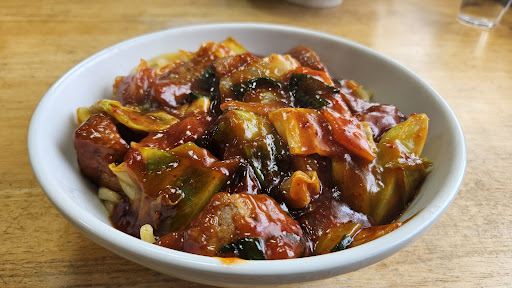 美味しいとは聞いていたので、スタミナ冷やし1.5玉900円のレバー増し+150円を注文です。10分程度で配膳されました。 レバーは臭みもなく、熱々でした。餡はやや濃いめの味付けです。キャベツや人参、かぼちゃなどが入り、麺は極太でもちもち食感です。餡がかかっているので、麺を啜るというよりは口に運んで頬張るといった感じです。 麺が少なくなったところで、辣油や酢をかけて味変しましたが、各々旨かったです。
