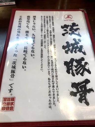 茨城豚骨 まる(ノーマル)730円 バリカタ 餃子🥟5個 380円 をオーダー。 メニューが沢山あるので悩みます🤣 少し待ちます。 豚骨臭さは然程無いかなぁ⁉️ 先ずは一口スープを‼️ ねっとりと濃厚な豚骨、麺によく絡みます🍜 スープを一緒に啜りすぎてまうくらいなのでこし落としながら啜らないと替え玉何回も楽しめなくなりますよ⚠️注意してくだされ‼️ 秘伝のタレを少々、ごまをたっぷり擦り擦り。 紅生姜を多めに、辛めの高菜が絶妙😋沢山。 麺が進みます。 大きめの海苔と一緒に食べるのも美味しいと思います。 チャーシューがトロトロでとっても良い豚を使っている感ありました。 臭みも無く美味しいチャーシューですよ😋 美味い😋 替え玉を一度オーダーしました。 まだまだイケるけど美味しいところでやめておきます🤣 食べてから暫くして満腹感あり😙 良かった🤣 餃子は中位の大きさかなぁ⁉️ 焼き加減は絶妙。パリッさくっと食感最高の焼き塩梅😋 とても上手です。 味は品のある餡の風味ですが、後一味欲しいかなぁ⁉️ 大人しめの美味さか😋 油っこく無い餃子です🥟 豚骨ラーメンまた食べたい🍜と感じる一杯です。 次回はまぜそばを🤣