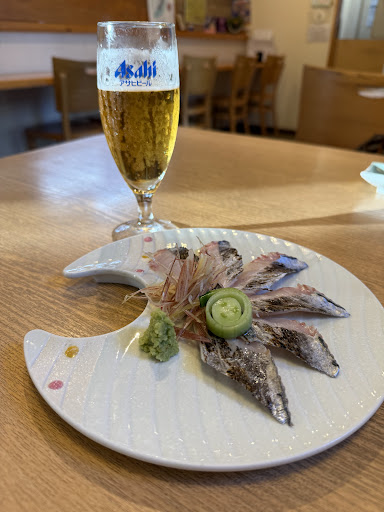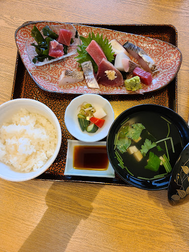 20240704平日の昼間(ランチ時)に初訪問。Google検索で気になってはいたが「敷居が高そう」で躊躇していたお店。この日、本当は別の店に行くつもりだったけど生憎その店が満席で入れなかった為、急遽コチラに。直前に電話すると「お待ちしておりますのでどうぞ」と歓迎してくれた❔ので直行した。しかし、ナビでは当に着いている筈なのに「店が見当たらない❗」どこナノ??辺りをうろちょろしてやっと見つけた❗隠れ家的な店の入口を‼️砂利敷きの駐車場に車を止めて店の暖簾をくぐり「こんにちは❗」「先程電話した○○ですが……」すると、大将が奥のテーブル席を指差し「どうぞ」と。それに従い席に着く。と同時に女将さんらしき若い女性がお茶(ほうじ茶)を入れてくれた。店内には先客が1組(3人のご婦人たち)のみ。テーブル席とカウンターで10名程で満席のこじんまりした店である。定食と一品モノ、それぞれのメニューから「刺身盛合せ定食」「みすじステーキ定食」「カツオ刺身」「煮こごり」を頼み、お茶で喉を潤し着繕を待った。数分後に来たのは定食の「前菜」である。同じモノが二つ。涼しげで旨い😋続いてメインの着繕である。「刺身」は6.7種の盛合せで丁寧に仕事が施されていた。もちろん鮮度バツグン。「みすじステーキ」は香り、柔らかさ、味、全て完璧😃✌️シェアして食した妻もその旨さに絶句していた。私はついついご飯をお代わりしてしまったのである。敷居が高い❔まったくそんな事ありません。絶品の食事が貴方を待ってます‼️是非一度足を運んで見て欲しい。そんなお店です。あっそ...