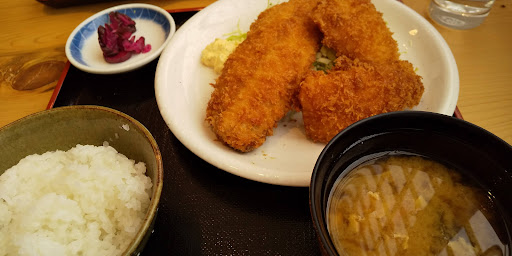 Read more確か以前は「つばさ」と言ううどん屋さんだったと思うけど、今日行ってみたら海鮮となっていたので入ってみました。 海鮮の看板なのにテーブルのメニューはから揚げ定食?カウンターの奥に手書きのメニューがあり、フライ定食(アジ・イカ)とあったので、それを頼んでみた。 ビックリするような大きなアジの片身と肉厚のイカフラ...