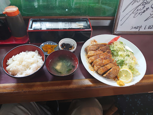 Read more袋田の滝の帰り車で通りかかり立ち寄りました。 カウンターとお座敷席があり地元のお客様でいっぱいでした。 もつの煮込み、薄切りの生姜焼き定食と刺身定食を注文。刺身はシェアしようと思い一番刺身の種類の多い(上)にしました。 どれも量の多さに驚きました。この量でこの金額は安い。 生姜焼きは赤身なので時間が経つと少し硬い、刺身はマグロが少し水っぽかったけれど他はおいしかったです。モツの煮込みが自分が子供の頃に食べた味に似ていて気に入りました。 また近くに来た際は他のものを食べるに立ち寄りたい。ただ料理の提供にかなりな時間がかかりました。いつもそうなのかわかいませんが、ドライブで立ち寄る時は余裕がある時に...