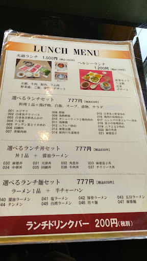 Read more中国人が調理 提供するお店 高級そうなイメージは有るがいたってリーズナブル 初入店時センサーでチャイムはなり続けるものの誰も出てこない 声を出して何度か呼ぶと厨房から料理人が出てきて席は2階だという 傾斜が急な暗い階段を上ると女性スタッフが出てきて正面の席に座れという 自分が注文したのは火鍋のランチ 一人前 税込1,650円 写真で見る皿に盛られてる肉はボリュームミーに見えるが実物は極薄切り肉を筒状に整形冷凍したもので 量は少ない値段相応の量といったところか 肉は部位別に3種類 うち1種類は 黒い斑点が明らかに出ている物だった 野菜は適量 白菜 ほうれん草 しいたけ等で 鮮度は良し ごまだれとポン酢で食べるようだが 火鍋の薬膳スープが美味くスープを飲みながら直接食べました...