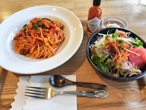 Read more雰囲気は食堂ですが、ジャズが流れてます😄 ナポリタンと唐揚げ定食を食べました。ナポリタン(900円)は生パスタ(地元の中橋製麺所の麺)で昔の喫茶店を思い出させる味、ケチャップの効いてて美味しいです😄唐揚げ(900円)は、からっと揚げてあり皮もパリッしてて味付けは濃すぎず丁度いい感じです。そしてなんと、米(地元のコシヒカリ)が今時珍しく、大盛り・お替り無料です😆 いちごのスムージー(期間限定)ま美味しかった😄 値段が安くて美味しいので是非行ってみ...