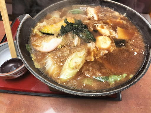 Read more袋田の滝の帰りに寄りましたが、駐車場は車がいっぱいで店内も結構混んでました。店内に入り順番待ちの用紙に名前を書いて待つと、間もなく名前が呼ばれ席に案内されました。メニューから煮込みうどんと釜飯のセットを注文。釜飯は15分ぐらい時間が掛かりますと可愛い店員さんに言われ、「そうだよな、釜飯だもんな…」とか連れと話しながら店内を見回していると、なんと釜飯セットが運ばれて来ました!ええっ15分掛かるんじゃなかったのか!?自分が頼んだ煮込みうどんは時間掛かるとは言われてないのに…15分掛かると言われた釜飯の方が先か!ハハハ、まあ早く来た予定外はアリですから。(笑)でも、釜の下の燃料は燃えたまんまですが…ああ、もしかして釜飯はここから15分なのか!?持ってきた店員さんは何も言わず置いていったけど、取りあえず燃料が燃えつきるまで待つことに…う~ん、いくら忙しいからといっても、「火が消えるまでお待ち下さいとか、このままお召し上がりくださいとか、ひと言でいいからなんとか言っていけよ!で、俺のうどんはそこそこ待った後にきたけど、決して美味しいとは言えないレベル!取りあえず色々な不満は置いといて、概ね完食。レジに行くと入店した時にみた光景…デジャブか?なんか皆変な紙の束出して、店員さんが切り取ったりして、それがダラダラ続いてる。あっ、Go...