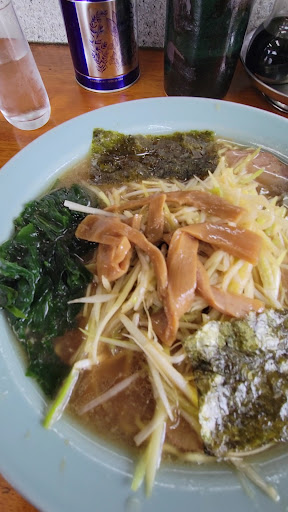 平日とあって客の出入りはまばらで、客層も年配の方が多く昔ながらの地元民に愛されてるお店のようです…今回初訪なので定番のネギチャーシュー麺のネギ増しと半ライスをオーダー!