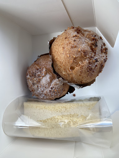 Read moreパピヨン(200円)を2個と、パピヨンロール(300円)をいただきました。名前の由来はわかりませんが、パピヨンは濃厚でなめらかなカスタードがたっぷり詰まったシュークリーム。皮はほどよく香ばしく、甘さのバランスも良いです。パピヨンロールは、ひんやりと冷えた生クリームがふんわりスポンジと合い、軽い口どけが心地よい一品でした。他のケーキも魅力的でしたが、全体的に価格はやや高めに感じます。 接客は丁寧で言葉遣いも落ち着いており、安心して注文できました。店内は清潔感があり、ショーケースの中もきれいに整えられています。落ち着いた雰囲気で、ゆっくり選ぶことができました。 今回は口コミ評価が高かったため訪問。味は十分満足できましたが、小さなケーキの箱にシュークリーム2個とケーキを重ねて入れられており、形が崩れそうで少し残念でした。 ご馳走様でした。 来...