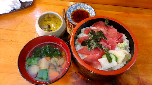 そして2日目は鉄火丼を注文。 ネタはちらし丼と比べるとマグロのみを使っている都合上ちょっと下のご飯が見える位しか乗っていないので少し寂しい印象でしたが、味は変わらず美味しかったです。 他、この日の汁物はけんちん汁(?)に変わり、他は1日目と同じでしたが日によってこの辺りは変えているのかもしれません。 また、例の如くこの日もお茶のお替りを貰ったらこの日は何も言わなくても白湯が出てきて接客の良さに感動しました。
