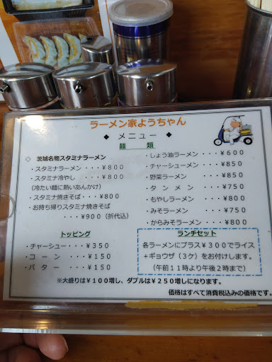 スタミナラーメン最北端と言われる所で食べてきました。スタミナ冷やし 具が多くてビックリ。 辛さは控えめで食べやすかったね。駐車場が入り辛かったし、台数少ないな。これから行く人はちょっと手前からハザードランプつけて様子見ながら減速すると良いね。例によってあと二回は来るようだ。スタミナ焼きそばと暖かいスタミナも食べてみないとね。 2018.6 普通の温かいスタミナラーメン食べてみた。レバーの臭みも感じられず、完食。やはり、具が多いな、これで680円かよ、安いな。次は、スタミナ焼きそばを食べよう。 2018.9 さて、三回目ですね。スタミナ焼きそばですね。見た目はスタミナ冷やしに似てますが、焼いたそばの香ばし食感があり、これはこれで美味しいね。他の店のスタミナラーメンへの興味も膨らみましたね。少し追いかけようか(-.-)y-~ 2018.10.スタミナラーメンの3件目にいったのでここを編集します。スタミナラーメン食べ歩きのために、私の基準を勝手ながら(ようちゃん)に決定ということで、、、偉そうでスミマセン 2019.1.27.来店です。、、、ここは肩が凝らないラーメン屋さんなので落ち着くわ🎵普通にスタミナ冷やし注文です。ここの冷やしは汁が別途付いてくるんですよ。 9割りほど食べたら汁を投入してどんぶりに残る餡を綺麗に食べきる事が出来ます。、、、え、そんなの当たり前じゃんってか!?、、、(゜ロ゜; 2019.7.11.12:14来店です。色々な店を回ってきたので、基準店で舌をリセットしに来たよ。今日はスタミナ冷やしにランチセットで自力ミニスタミナ丼ですね。この餡はご飯にも合うね〰️。ギョーザはにんにくが効いて美味しいっすw、、、、 (゜ロ゜; チャーシュー忘れた。次回だな 2019.8.29.スタミナ冷やしにトッピングチャーシューにランチセット、、、、注文し過ぎ(゜ロ゜; でも、完食。自力チャーシュー丼写真忘れました。 2019.9.29.からみそラーメンにランチセットですね。よくよく見たら、ここはからみそラーメンが人気のようですね。昔懐かしい感じの味はほっとしますね。 2019.11.3.スタミナラーメンhotにランチセット注文ですね。単価がちとあがって、¥700と¥230で合わせて¥930になりました。スタミナ焼そばのテイクアウト¥800表示が目立つようになりました。そろそろ代替わりですかね?注文の半分は若いお兄ちゃんが調理してます。個性が強いお店の代替わりは色々難しいでしょうが、頑張ってください。常連の皆さま方優しく見守っていきましょうね。 2019.12.27.17:30スタミナ冷やしと持帰りスタミナ焼そばを注文。今日はドンマイお兄ちゃん!店主との連携頑張れ。 2020.2.24.お兄ちゃんの動きが変わりましたね。ここから...