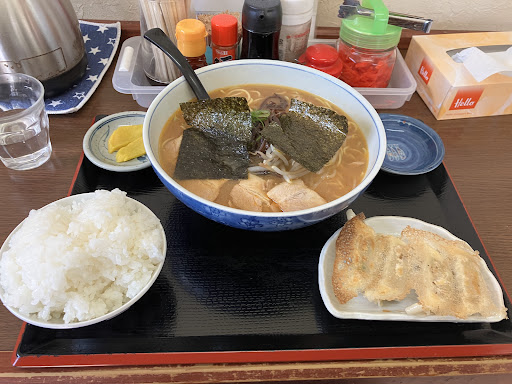 人吉からえびのへ抜ける221号沿いにあります。 宮崎方面に行く場合でも下道を利用することは少ないため店の存在自体知りませんでした が、グーグル先生の導きを受けて訪問。 良い感じにくたびれガテン系御用達といった店内は個人的に嫌いではありません。 メニューはラーメンを中心としたシンプルな構成。以前は丼や定食も数種類あったようですが現在はかなり絞られています。価格は非常に安価です。。 お店の雰囲気にサービスセット750円をみそラーメン大盛り+100円の計850円で頂きました。 麺は中太ストレート。麺の硬さはもう少し硬めが好みですが、全般に味は悪くありませんし、大盛りだとボリュームもしっかりあります。これにご飯餃子がついてこの価格は破格かと。 セットメニューのラーメンは豚骨、醤油、味噌等から選びますがチャンポンに変更することも可能です。 店内はカウンター4席、小上がりのテーブル席が3卓ありました。 車は店舗前面の砂利敷部分に...