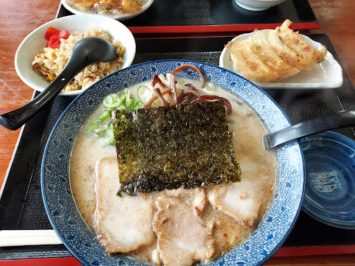 私は満点セットを注文しました。ラーメンと餃子とチャーハンのセットです。 まずビジュが良かった。おいしそー!って自然と声が出ました。 ラーメンは濃いめの豚骨。麺は中太麺。トッピングのチャーシューが絶品でした!! 柔らかくてとっても美味しかった!今まで食べてきた中で1番美味しいチャーシューでした。 炒飯と餃子も普通に美味しかったです。 とにかくチャーシューが絶品なので次行く時は満点セットにチャーシューを追加トッピングするつもりです😋