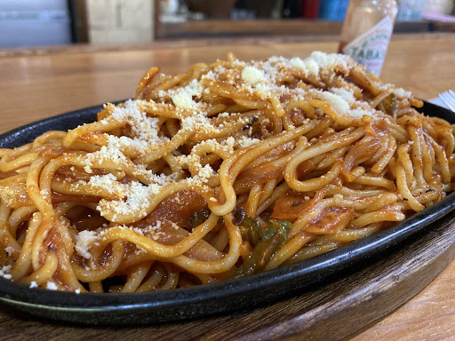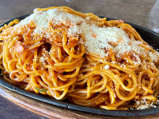 Read more国道219号沿い、万江川の河岸にキノコの山みたいなフォルムの美しいシルエット。 グリルかかしは50年近く営業されてるそうです。 私の記憶では随分昔から、八代から人吉に球磨川に沿って来ると、グリルかかしを見て人吉に無事着いた!と安堵していました。 そんな灯台のごときグリルかかしで初食事です。 注文はイタリアンスパゲッティ。 ナポリタンのようです。 いつものように大盛りで注文します。 熱々鉄板に盛られたイタリアンスパゲッティは、じゅうじゅう鳴らしながら運ばれてきます。 タバスコを少々かけて、チーズは適量かけてあります。 チーズはかけておいてもらわないと、あるだけ全てかけとしまうので、健康面ではありがたいけど、やや残念。 まさに喫茶店のナポリタンです。 具材は若干寂しいけど、すこぶる濃厚なナポリタンです。 美味いです、こんな良店に来たことがなかったなんて不覚でした! ま...