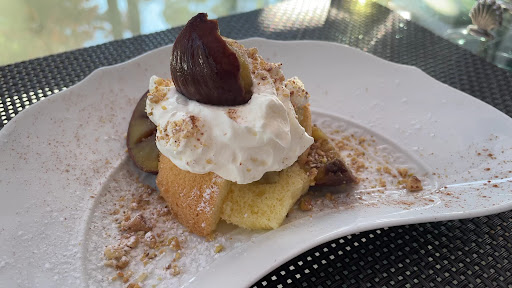 もう満腹でデザートを諦めたものの せっかくなので…ということで デザートもオーダーしました。 デザートは選ぶことが出来ないようなので オーダーの際にお尋ねされてください。 この日はモンブランのケーキ。 地元で取れた栗をふんだんにつかったケーキです。 スポンジは米粉で作っているそうです。 ゴロゴロした栗やクラッシュされた栗、ペースト状の栗…と、たっぷり栗を堪能出来ます。